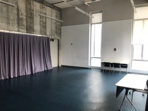 The 158-seat theater is a semi-flexible, black-box space with an extensive lighting plot and sound inventory. There is a spacious lobby featuring a concessions bar, seating areas, restrooms, a gallery and a terrace that can be used for events. There are two rehearsal rooms, one with installed dance floor and a mirrored wall. These are primarily reserved for the Project’s rehearsals and classrooms, but can be rented for an additional fee, depending on availability and needs of the renter. On the third floor, in addition to the conveniently designed technical booth, there are two dressing rooms with full bathrooms including showers.